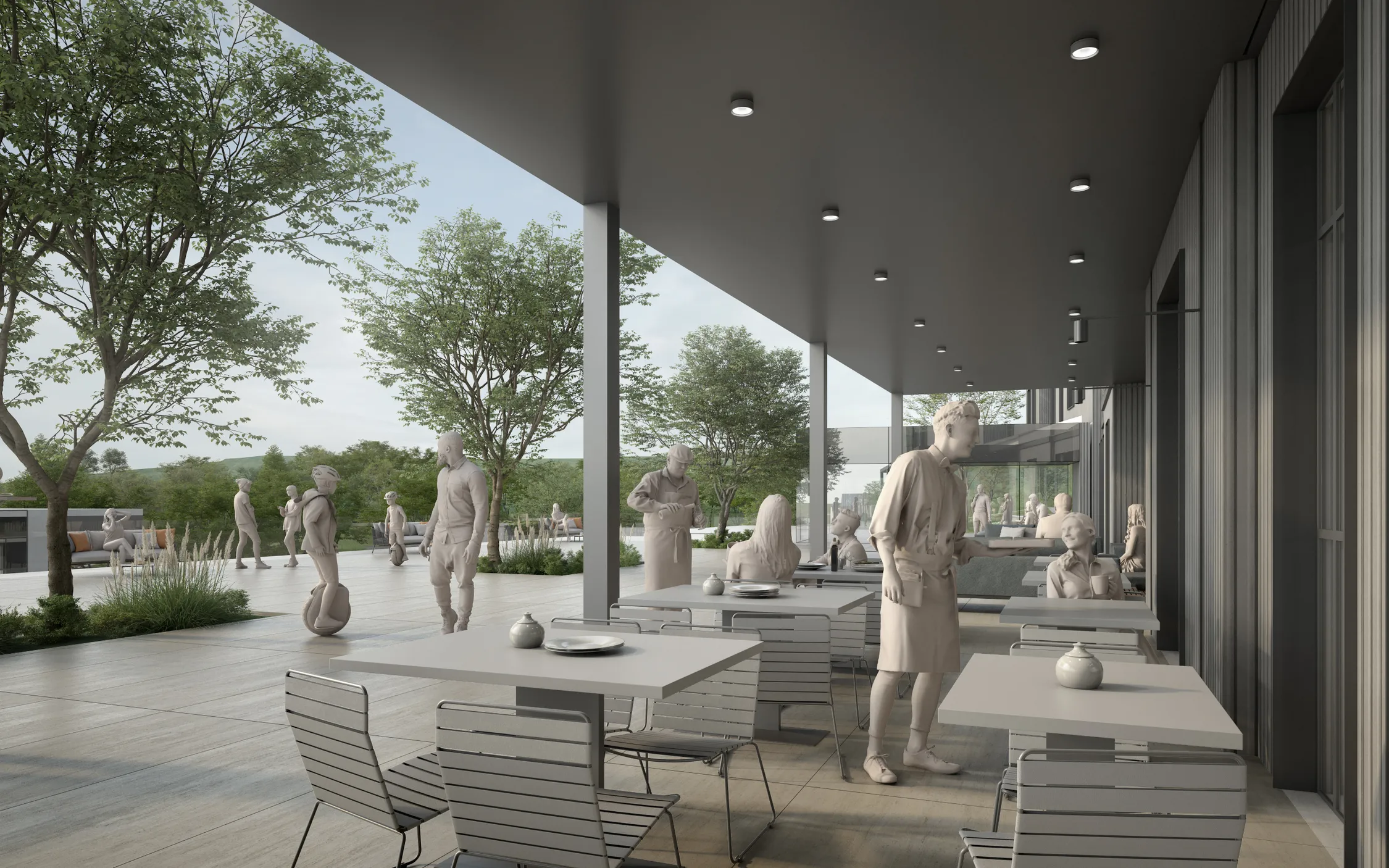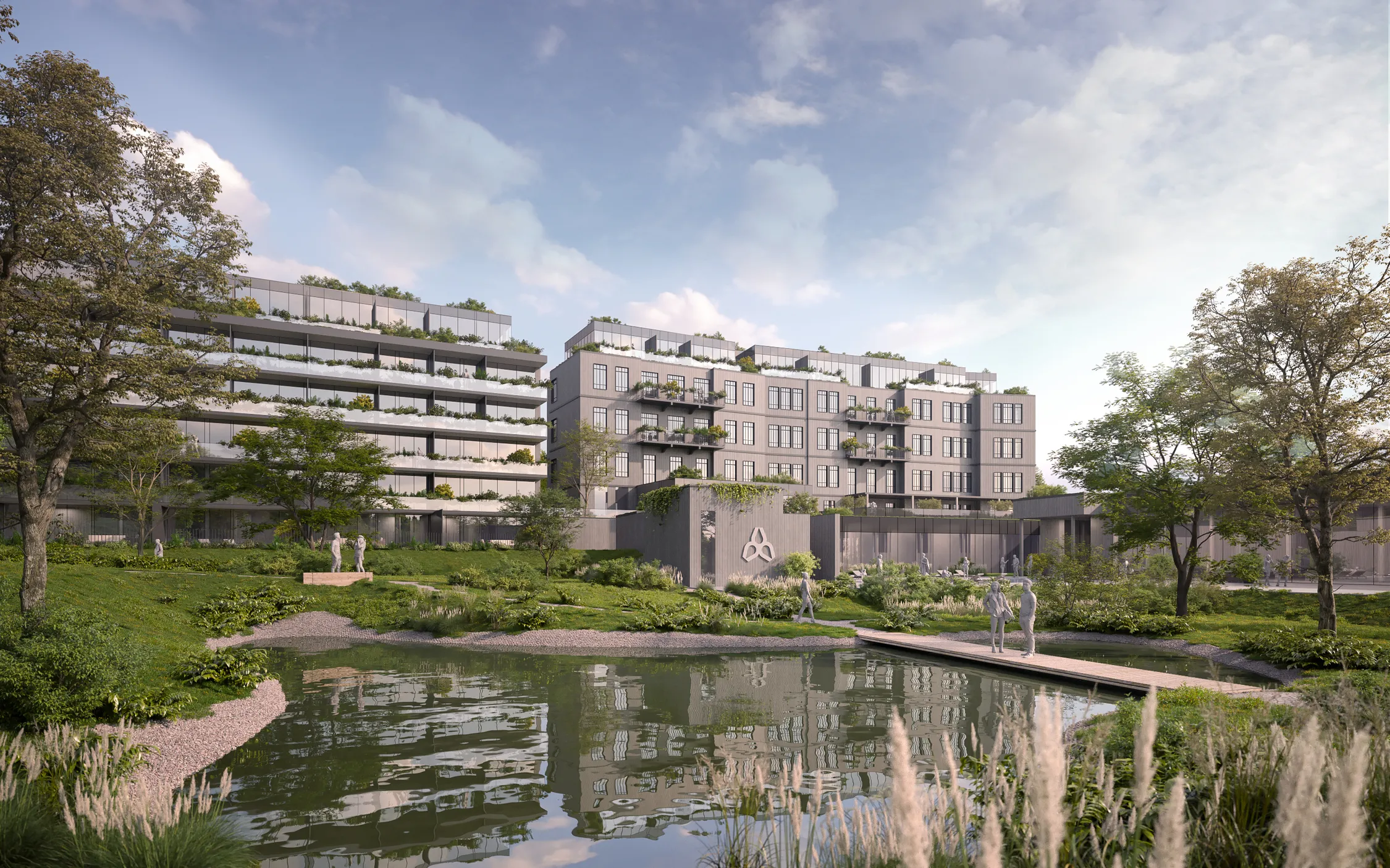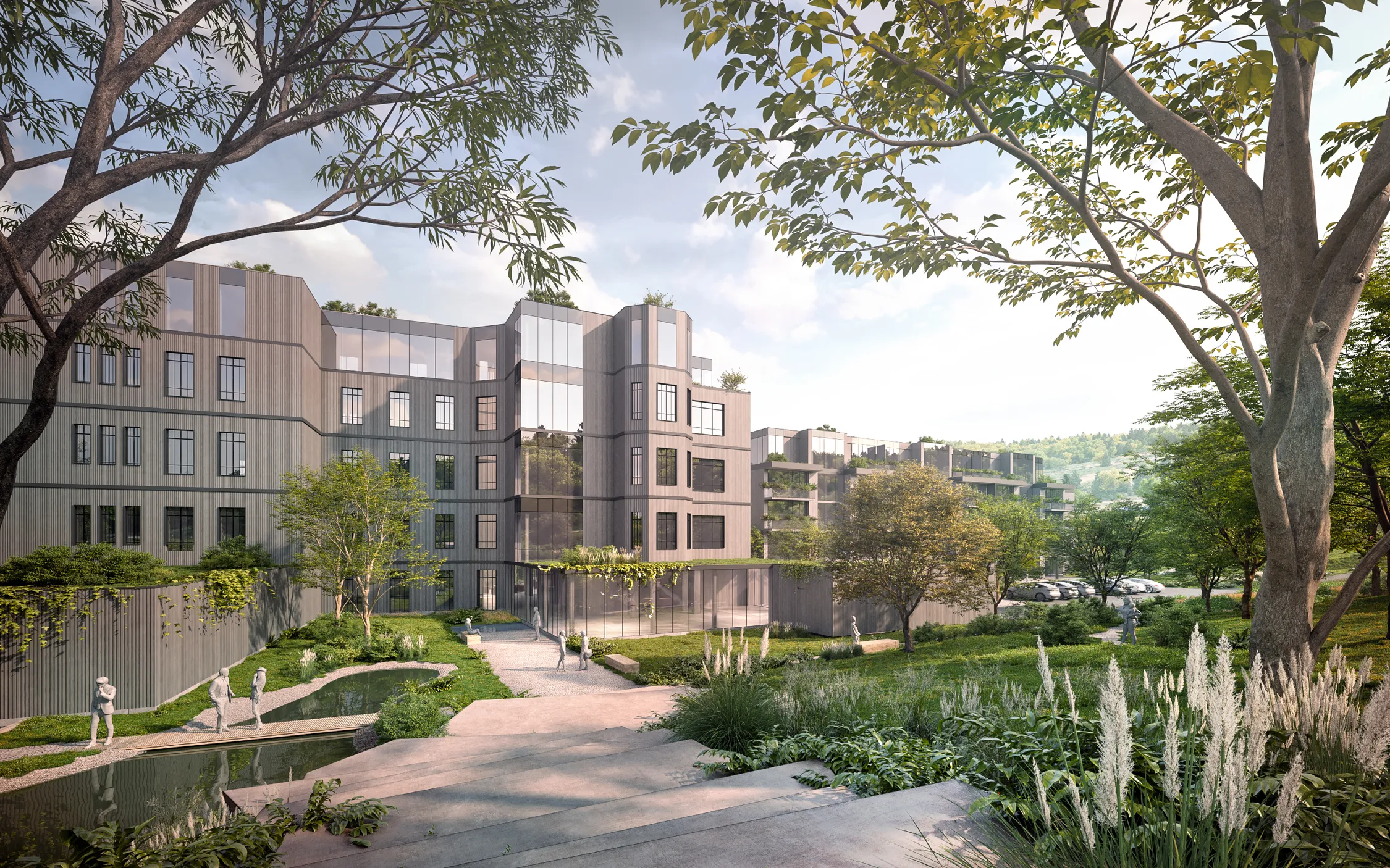 Apartmány doplňuje široká škála služeb – od ordinací přes parkování až po prostory pro volný čas a komunitní život.